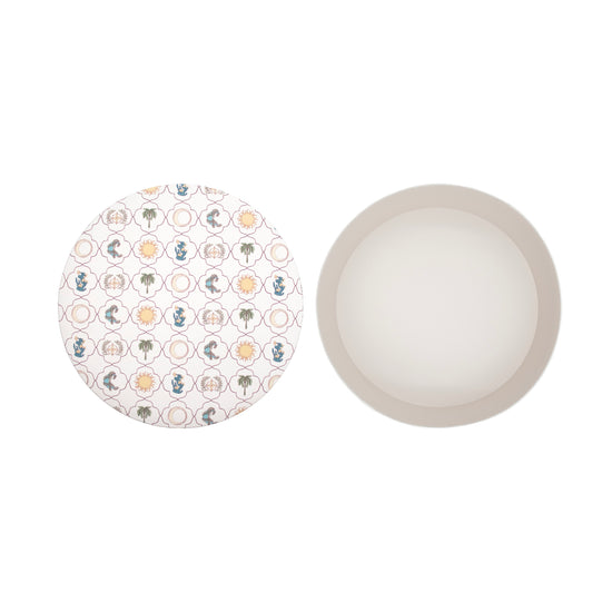 This round gift box features a beautifully crafted fabric lid with a seamless patterned design inspired by traditional motifs. Designed for versatility, it can be used to store dates, chocolates, or keepsakes, making it a refined addition to festive tables, gifting moments, or everyday home organisation.