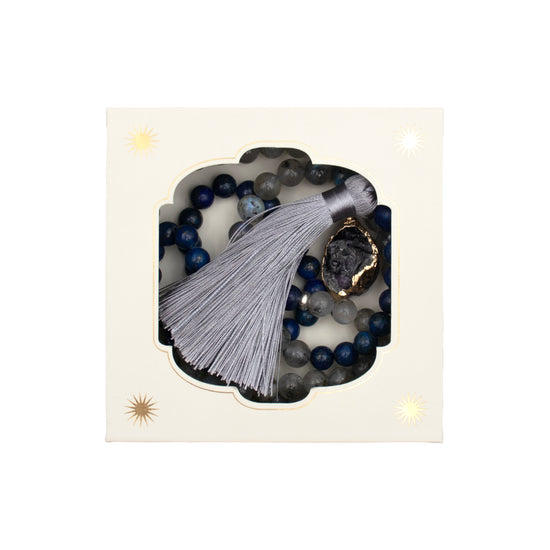This high-quality tasbih is crafted with gemstone beads and finished with elegant tassel detailing, featuring 33 beads designed for daily prayer and reflection. Presented in a gift box with a clear window to showcase the tasbih inside and finished with gold foil accents, it is thoughtfully designed for both personal use and meaningful gifting.